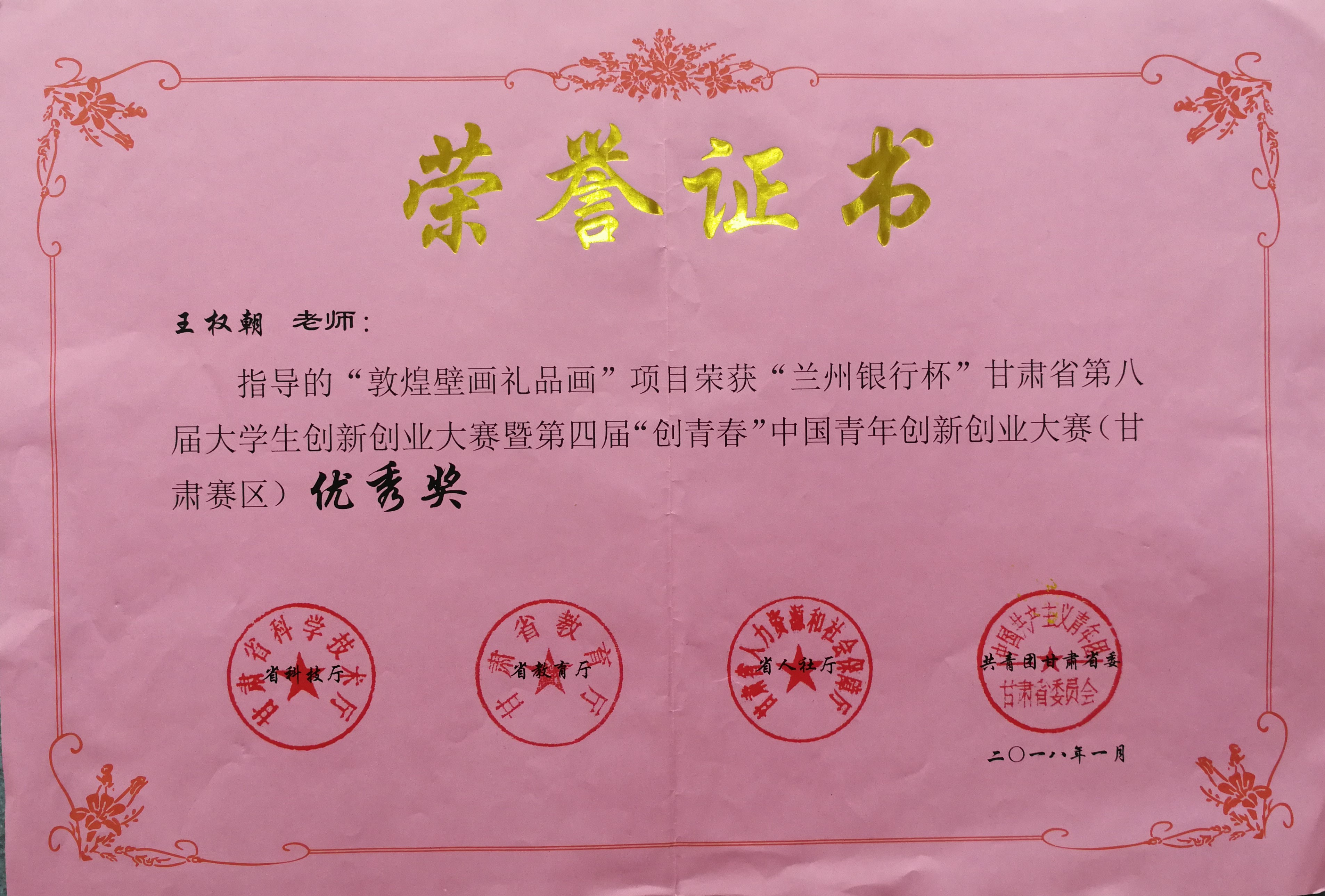 王权朝文创工作室充分挖掘地方文化资源,立足敦煌文化、丝路文化、胡杨文化,进行校园文创产品、旅游纪念品、博物馆文创产品及艺术衍生品设计研发。工作室将专业教学与创业教育融合,通过组织学生参加创业大赛、进行产品研发、参与创业实践,培养学生的创新思维、创业意识和创业能力。
