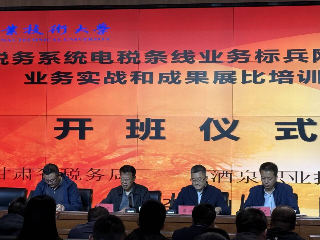 国家税务总局甘肃省税务局信息中心副主任谢江,酒泉职业技术大学党委委员、副校长王金明等领导出席开班仪式。