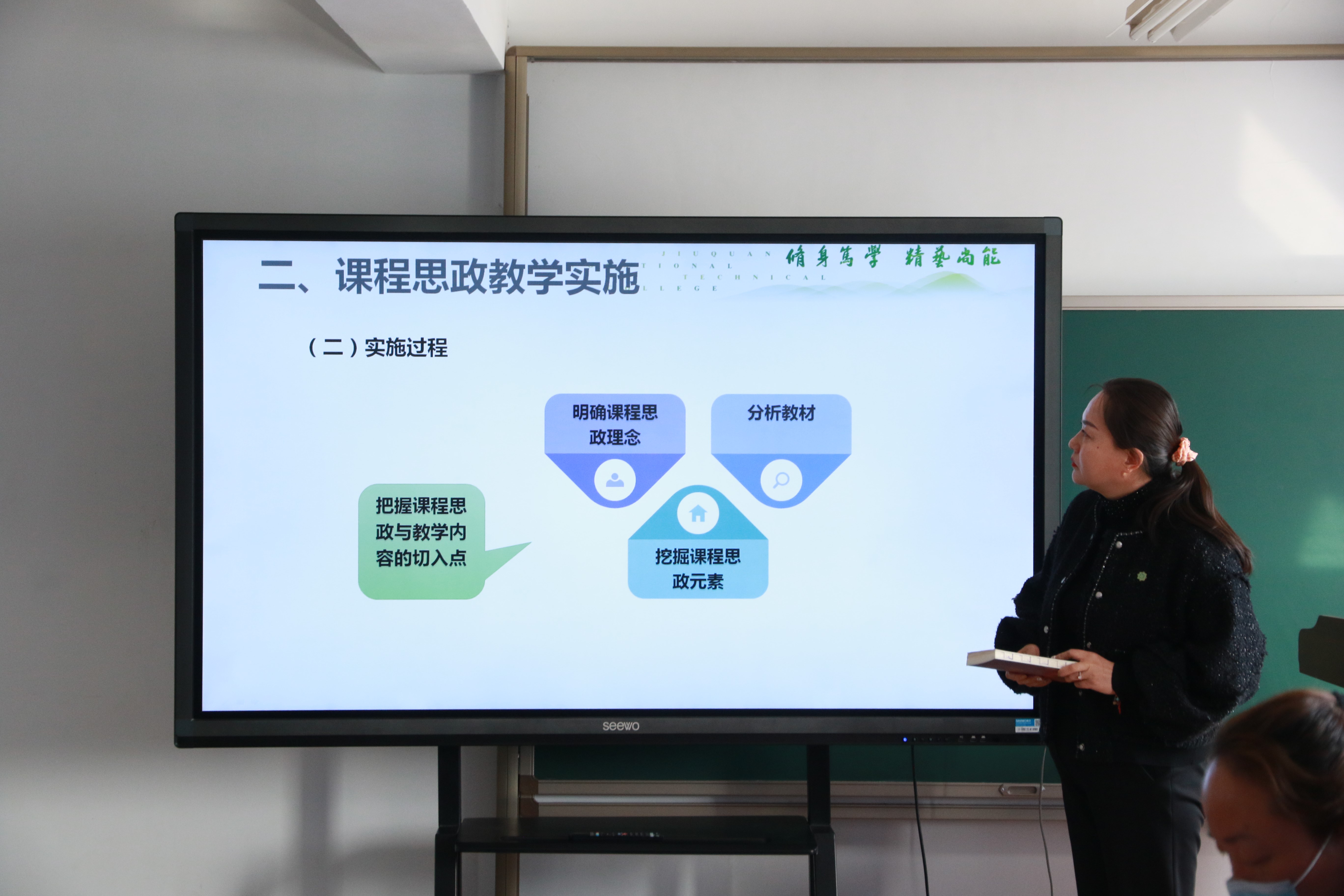 专题研讨活动中,段晓燕、程璐璐、夏瑞洲、王莹四位老师结合《敦煌舞》《幼儿歌曲演唱》《学前儿童发展心理学》和《婴幼儿心理学》专业课程,从课程思政整体设计、课程思政教学实施、成效与特色创新、教学反思与改进四个方面,汇报了思政元素挖掘与思政教学实施方面采取的措施和取得的实效。全体老师围绕课程思政改革实践,课程思政元素挖掘,探索课程思政、提出新思路、探索新方法等方面进行了研讨。