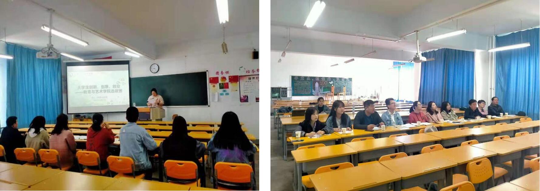 为激发大学生的兴趣与潜能,培养大学生创新意识、创意思维、创业能力以及团队合作精神。4月28日下午,教育与艺术学院在行知楼408教室举办了“大学生创新创意创业大赛预选赛”,共有十四个团队参赛。