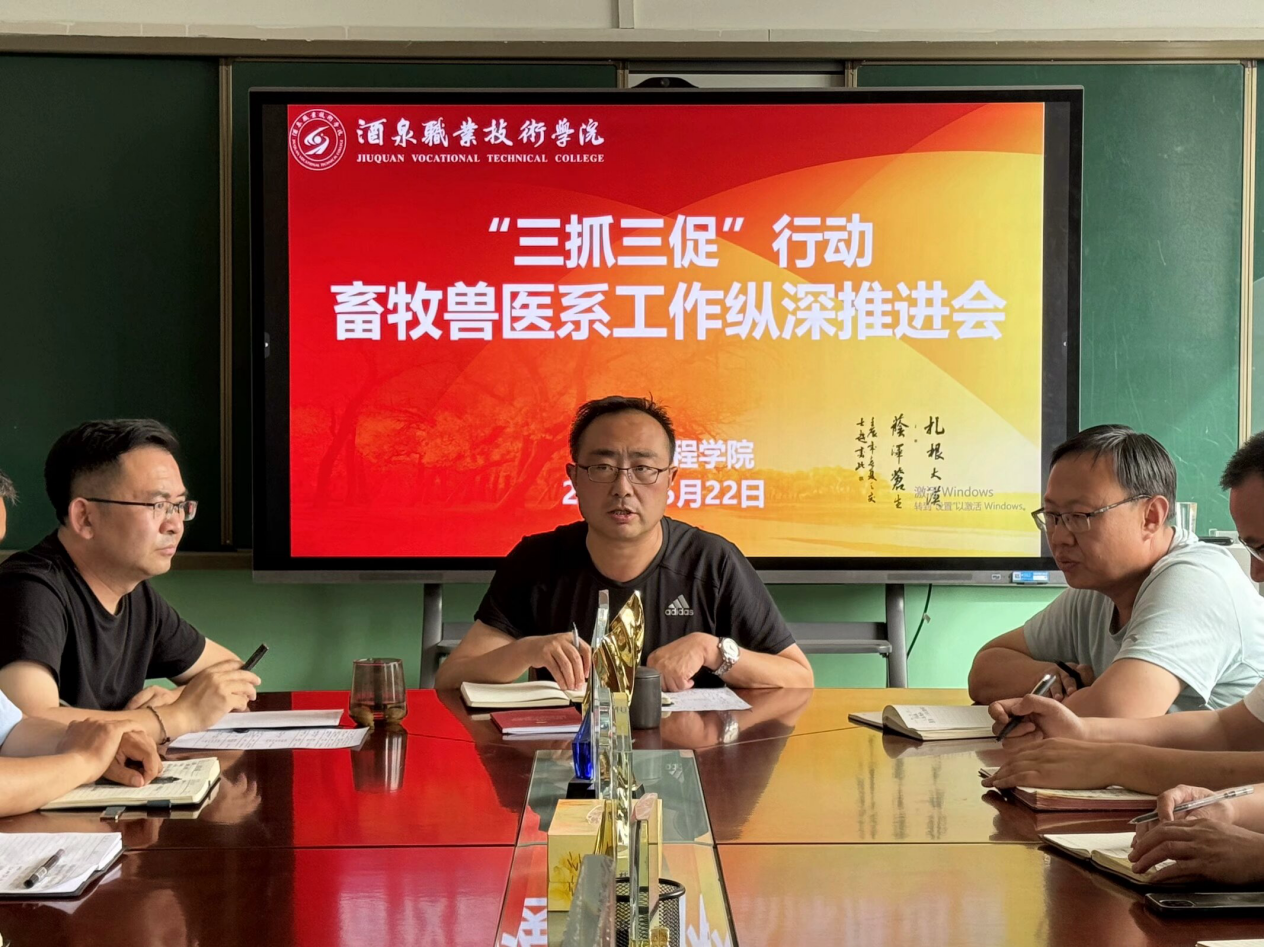 为不断提升内涵建设,压实工作主体责任,坚定落实“三抓三促”行动纵深推进,生物工程学院针对畜牧兽医专业建设无特色、队伍凝聚力不强、重点工作推进迟缓等问题,于5月22日下午在逸夫楼315会议室召开“三抓三促”行动畜牧兽医系工作纵深推进会。会议由学院党支部副书记张涛主持,院领导、畜牧兽医系全体教师参加会议。