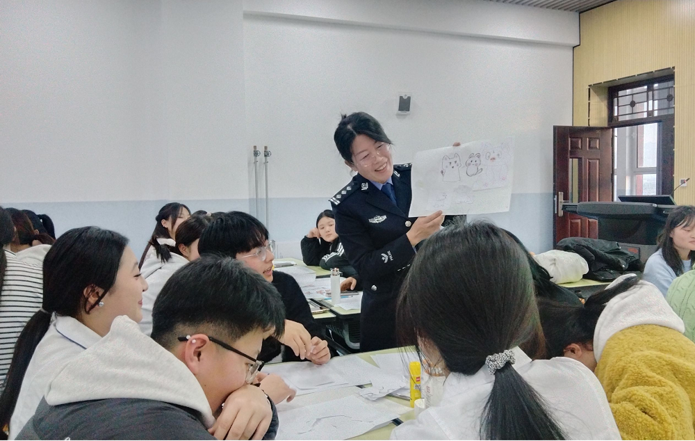 这次活动旨在为同学们提供一个互相了解、互相支持的平台,帮助他们在面对大学生活中的各种挑战时,能够以积极健康心态从容应对。活动内容丰富多彩,包括“热身活动:孤掌难鸣”、“我是谁:画一种动物代表自己”、“团体我:手撕画组合”、“重要我:画宫格”等多种团队合作游戏、情感分享会等。这些活动不仅能够让学生们在轻松愉快的氛围中释放压力,还能够帮助他们认识到团队合作的重要性,学会在集体中自我定位,增强归属感和认同感。在刘警官的引导下,学会更好地管理自己的情绪,提升自我认知和自我调节的能力。