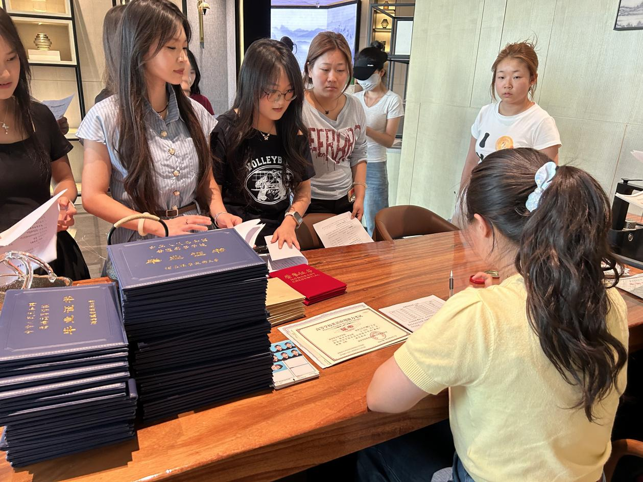 为了不让每一位学子的重要时刻留下遗憾,教育与艺术学院领导高度重视,特别委派教师跨越千里,为同学们举行了一场简单而庄重的毕业证书发放仪式。老师亲手将象征着多年辛勤学习和专业成长的毕业证书和荣誉证书,郑重地交到每一位到场的毕业生手中。同学们脸上洋溢着幸福的笑容,却也难掩激动的心情,眼中更是闪烁着感动的泪光。不少毕业生表示,没想到老师会亲自来送毕业证书,这份“意外之喜”让他们倍感温暖和荣耀,同时也弥补了自己因工作未能回校的遗憾。