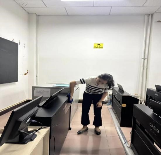 全体教师充分展现出高度的责任感和使命感,全身心投入到此项工作中,教师党员们充分发挥模范带头作用,他们以身作则,不怕脏、不怕累,认真清理实训室的每一个角落,擦拭设备、整理物品、清扫地面。仔细检查设备的运行状况,对老化线路和损坏部件进行详细记录,以便及时维修更换,确保设备运行安全。