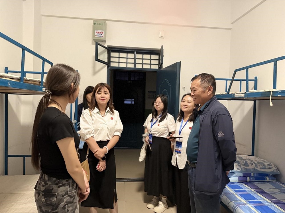 为及时了解新生报到与适应情况,9 月 7 日晚上,旅游与烹饪学院党支部书记张来顺,党支部副书记、院长刘兴龙,副院长马东邦,副院长杨蕊肇带领2025级班主任走进新生宿舍,把学校的牵挂与期望亲手送进每一间“新家”。