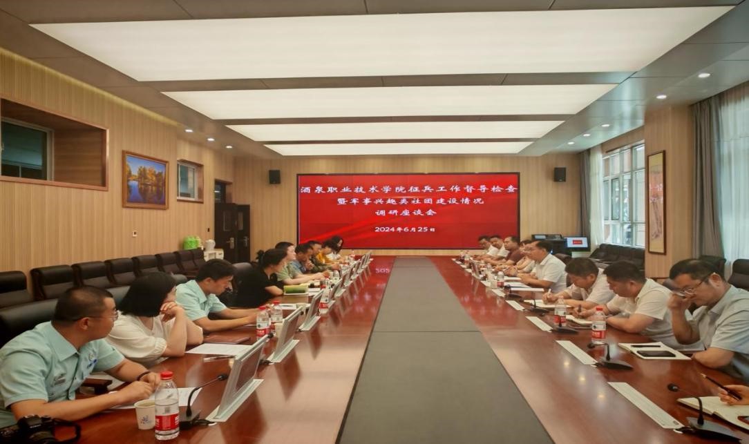 6月25日下午,酒泉市征兵办督导调研组来校检查调研高校征兵及军事兴趣类社团建设工作。学校党委委员、副校长施荣陪同调研。相关部门负责人、二级学院负责征兵工作副院长参加了座谈会。