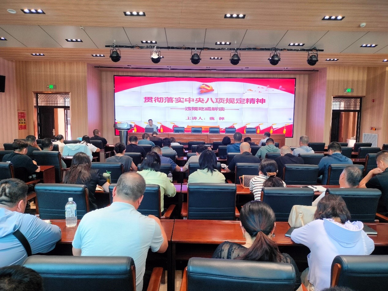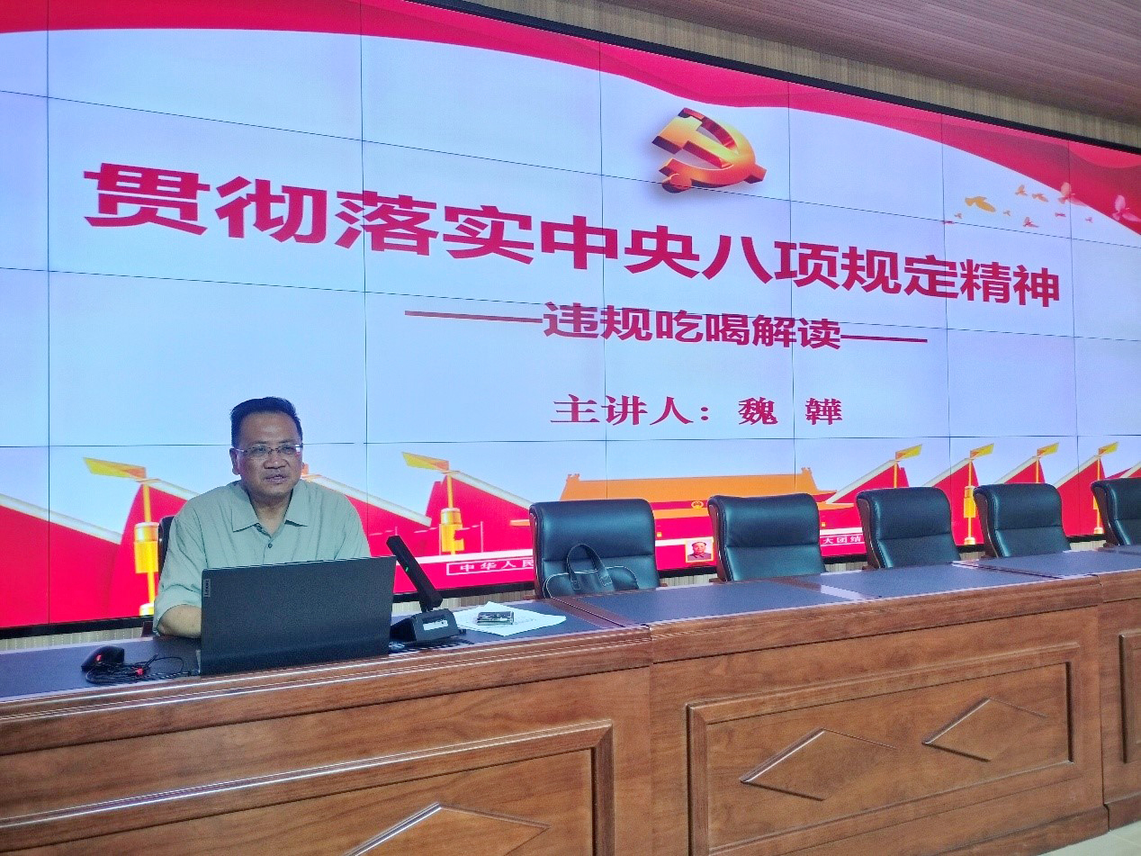 专题党课上,魏韡从违规吃喝行为的认定、违规吃喝的类型、违规吃喝的处分依据、违反八项规定典型案例等四个方面进行了系统阐释和详细解读。魏韡强调,“违规吃喝”被人民群众称为“舌尖上的腐败”,最容易发生、最容易败坏党的形象、最容易带坏社风民风,是典型的违反中央八项规定精神行为。提醒全体党员干部要常怀律己之心,绷紧自身“廉洁弦”,杜绝侥幸心理,时刻保持清醒,做到知敬畏、存戒惧、守底线,筑牢思想防线,严守纪律底线。