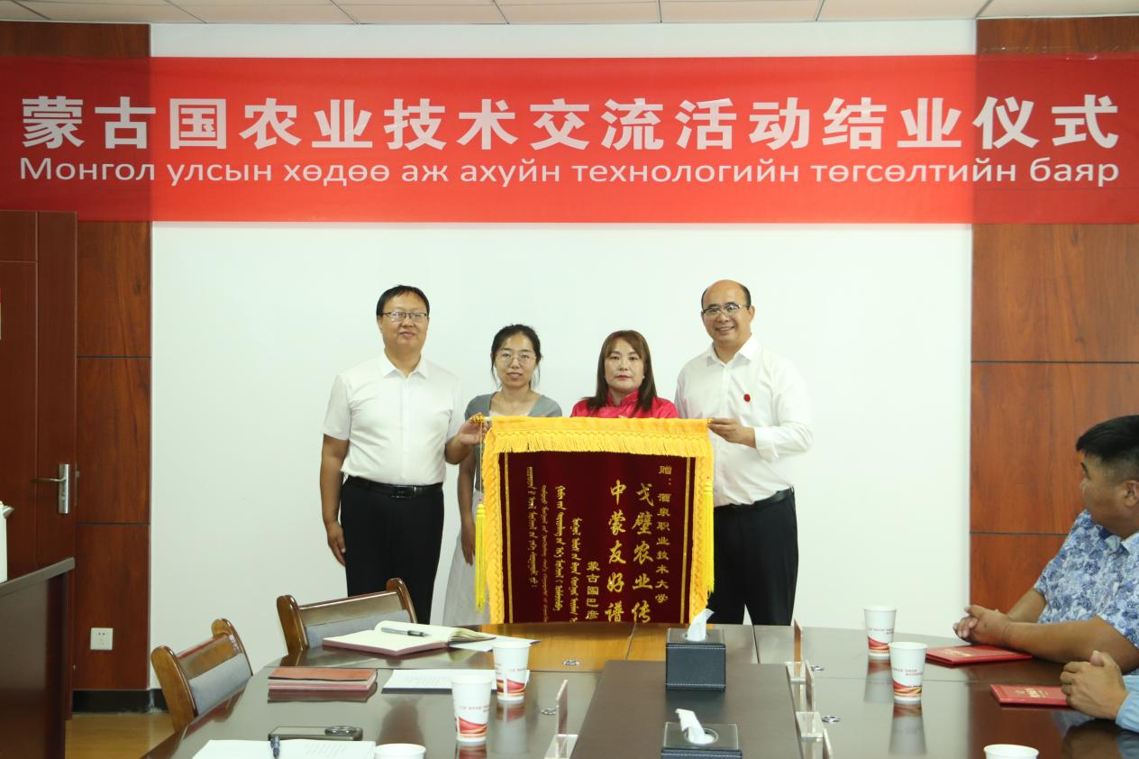 2025年9月1日,由酒泉市外事和经济合作局主办、酒泉职业技术大学承办的蒙古国巴彦洪格尔市农业技术交流活动结业仪式举行。酒泉市外事和经济合作局党组成员、副局长刘玲, 学校党委委员、副校长杨洁出席结业仪式。蒙方代表团图・额尔登祖拉女士等五名农林技术人员,酒泉市外事和经济合作局相关科室负责人、酒泉职业技术大学生物工程学院相关领导以及教师代表参加结业仪式。