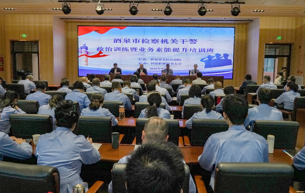 2025年9月15日,由酒泉市人民检察院主办、酒泉职业技术大学承办的酒泉市检察机关干警政治训练暨业务素能提升培训班在我校顺利开班。酒泉市人民检察院党组副书记、副检察长张建春,学校党委委员、副校长杨洁,酒泉市人民检察院党组成员、政治部主任周璐出席开班仪式。酒泉市人民检察院基层检察长、机关干警等近60名学员及酒泉职业技术大学相关领导老师参加开班仪式。