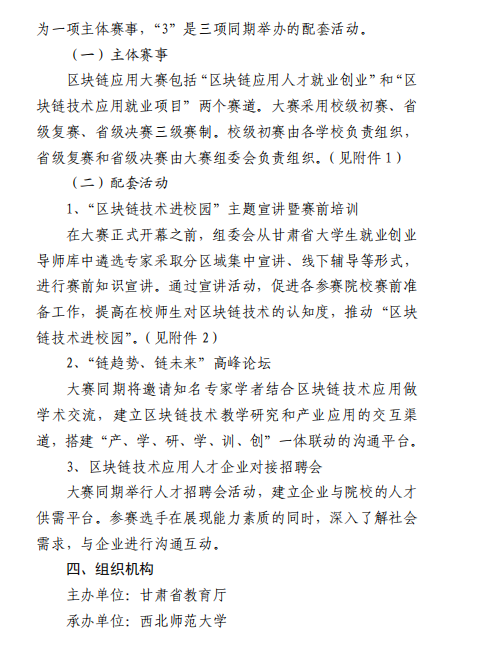 关于举办甘肃省首届高校区块链技术应用 人才就业创业大赛的通知