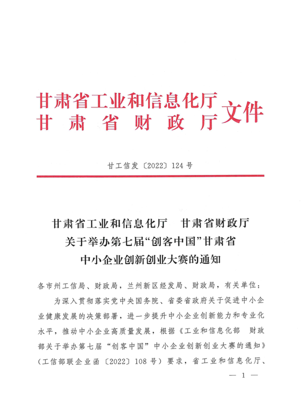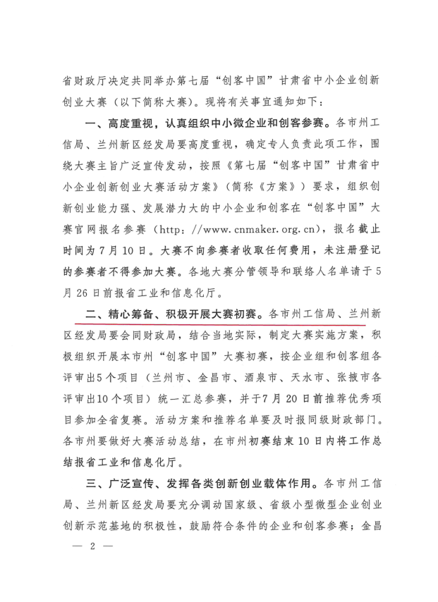 甘肃省工业和信息化厅 甘肃省财政厅关于组织参加第七届“创客中国”甘肃省中小企业创新创业大赛的通知