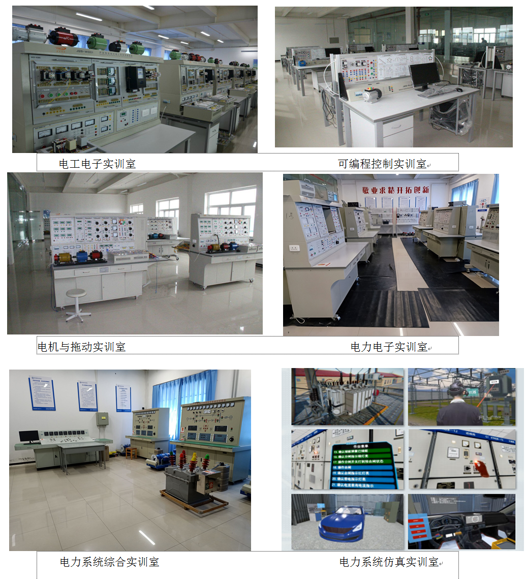 在原有校内实训条件基础上,新建了电力系统综合实训室、电力系统仿真实训室,扩建现代电气控制、智能控制、新能源发电技术应用与创新、供配电技术等实训室;升级改造电工技术、电子技术、电力电子技术等实训室。这些为教师教学、科研,学生实训提供了极佳的场所。