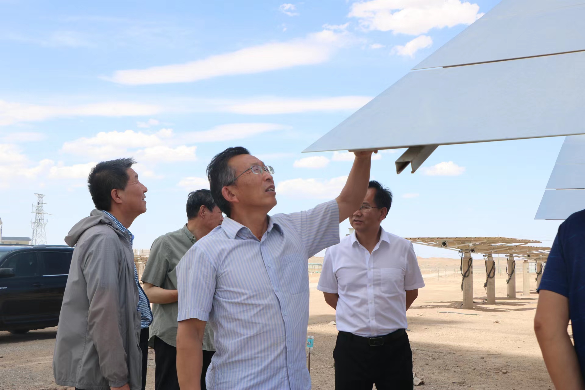 2022年7月2日,酒泉职业技术学院党委书记、校长易志军带队一行6人赴玉门鑫能光热第一电力有限公司开展访企拓岗专项行动。在公司领导的陪同下,易书记一行参观了太阳能光热电厂的生产现场,了解了太阳能光热发电原理和运行情况,调研了公司的发展和用人情况。