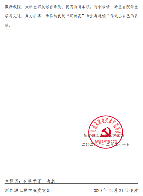 关于表彰2020年度新能源工程学院党支部“优秀学子”的决定