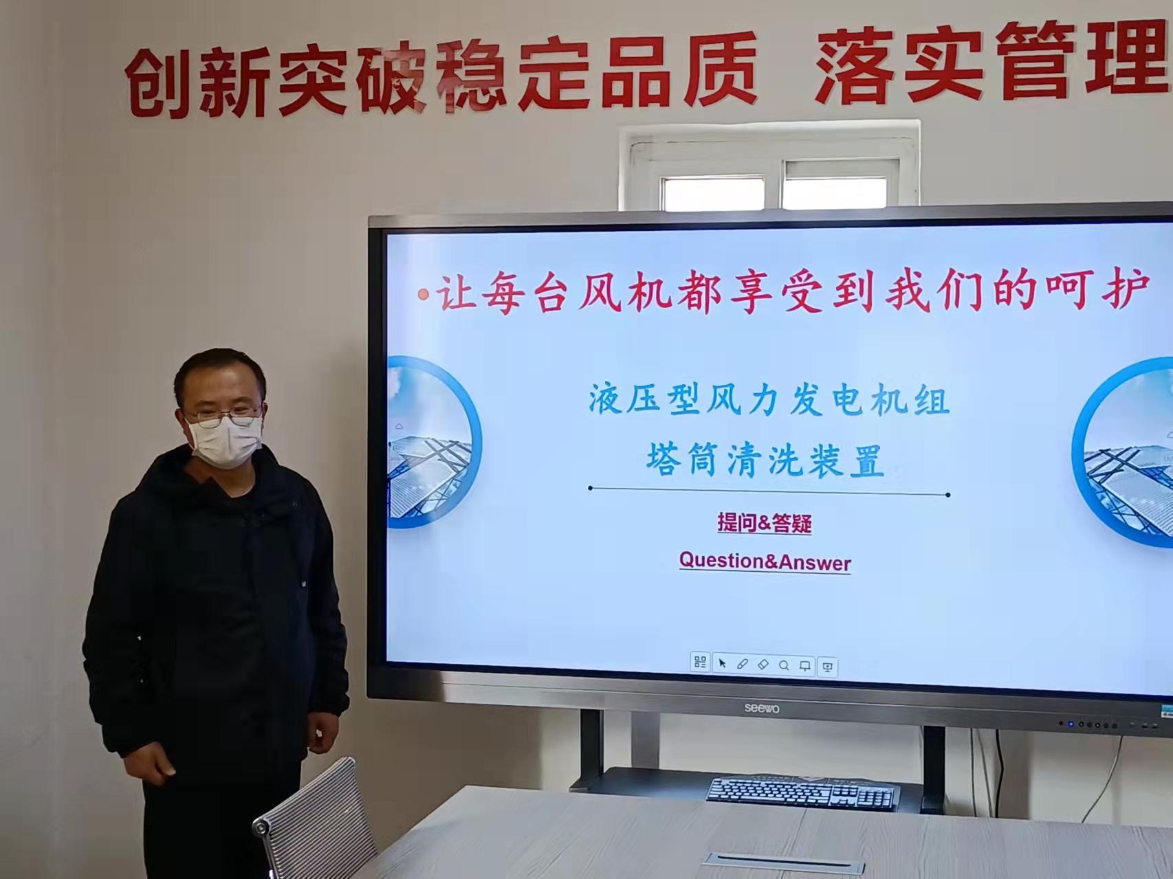 新能源工程学院老师甄亮博士作《新型风力发电机组塔筒清洗装置》结题汇报