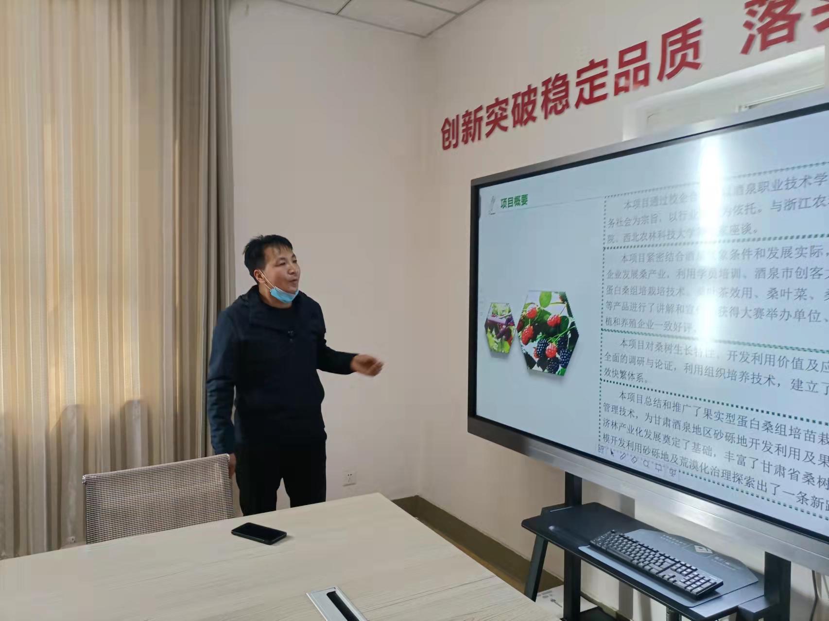 生物工程学院张永久老师作《砂砾地食用桑芽菜原生态栽培及桑产品的产业化开发》结题汇报