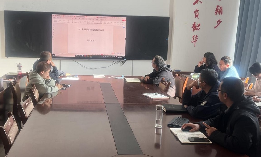 随后,马东邦副院长组织学习了《2025 年世界职业院校技能大赛制度汇编》,并结合2025年世界职业院校技能大赛赛道简介解读了省赛赛项调整政策,帮助师生精准把握赛事方向,为师生备赛提供清晰指引。