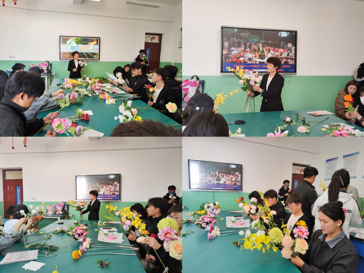活动结束后,同学们纷纷表示受益匪浅。花艺协会的会长张瀛瑞兴奋地说:“这次活动让我们将学到的花艺知识和社会流行趋势相结合,技能得到了提升,也让我们更加感受到了花艺的魅力。” 此次花艺师走进我院指导花艺协会的活动,不仅丰富了同学们的课余生活,提升了他们的艺术修养,也为校园文化建设注入了新的活力。相信在未来,花艺协会的同学们将带着这份热爱与收获,在花艺创作的道路上绽放出更加绚丽的光彩。