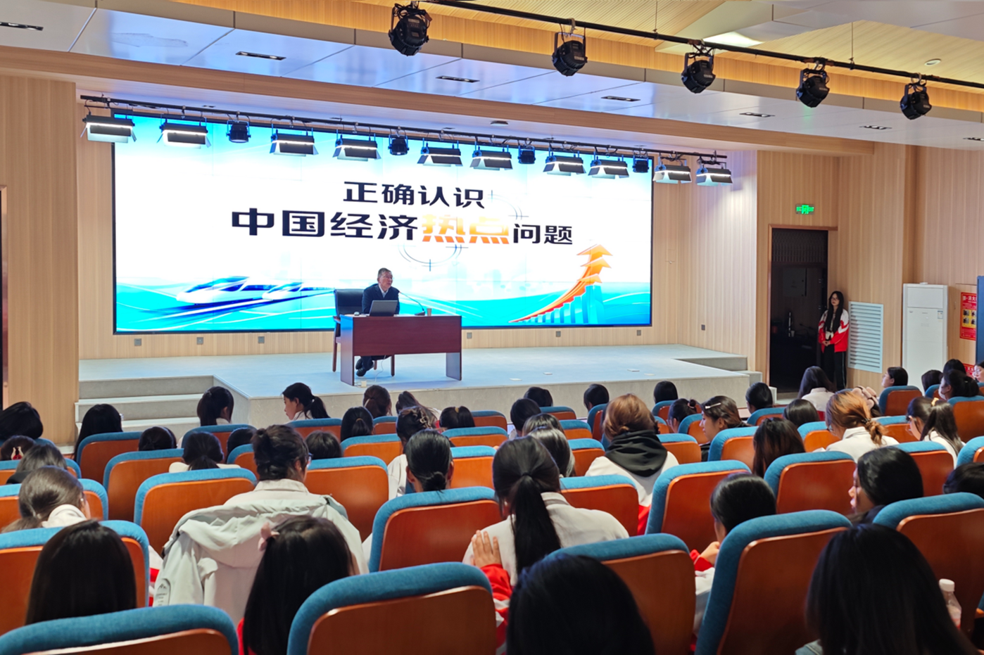 2025年10月15日,党委书记易志军以“正确认识中国经济热点问题”为题,为2025级学生讲授秋季学期形势与政策第二课。