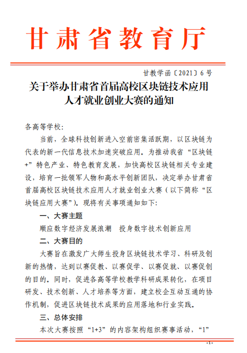 关于举办甘肃省首届高校区块链技术应用 人才就业创业大赛的通知