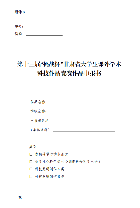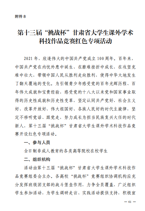 关于组织开展第十三届“挑战杯”甘肃省 大学生课外学术科技作品竞赛的通知