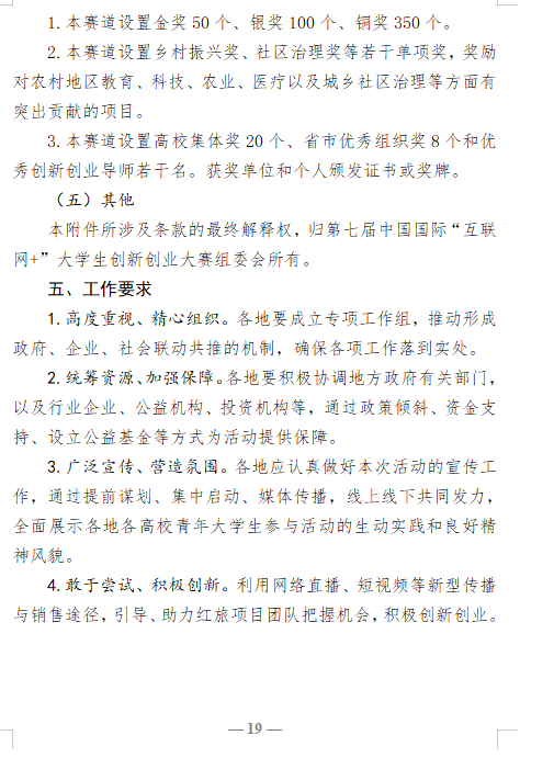 教育部关于举办第七届中国国际“互联网+” 大学生创新创业大赛的通知