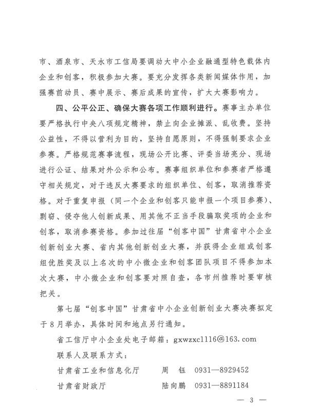 甘肃省工业和信息化厅 甘肃省财政厅关于组织参加第七届“创客中国”甘肃省中小企业创新创业大赛的通知