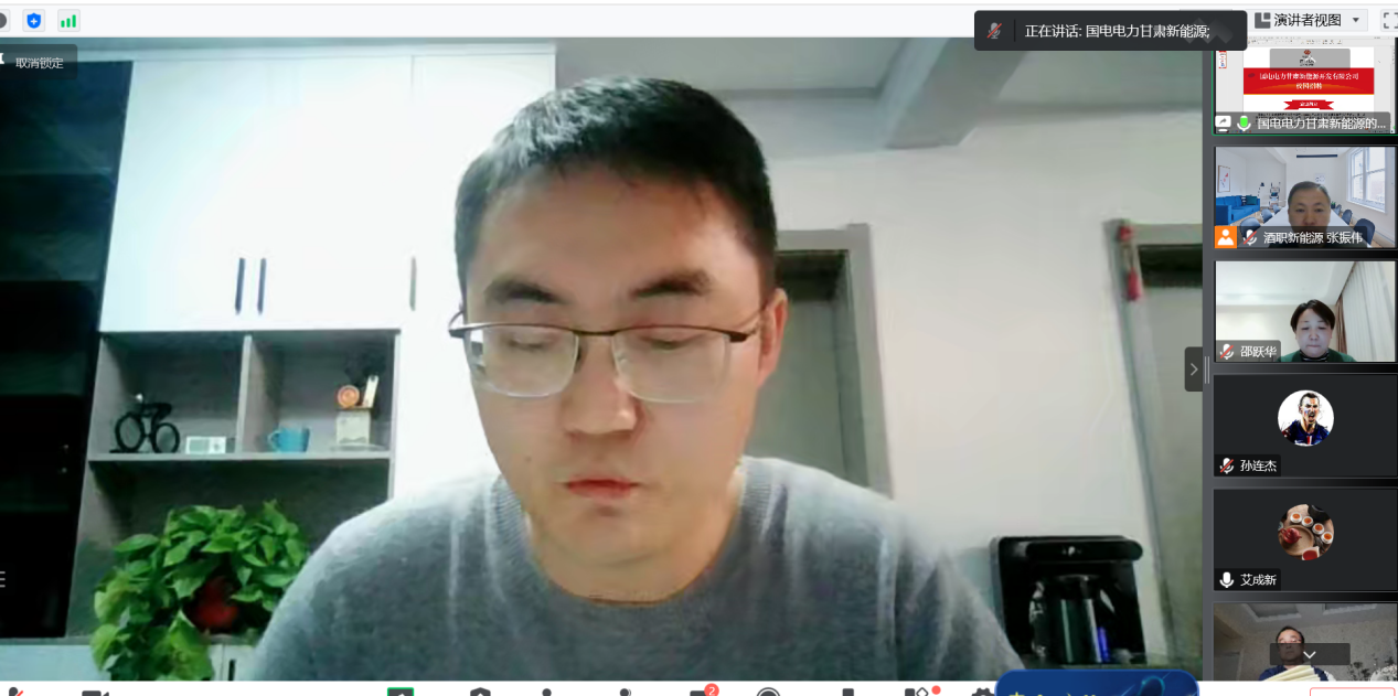 为提高我院毕业生就业质量,实现优质就业,2022年11月21日晚,新能源工程学院邀请国电电力甘肃新能源开发有限公司通过线上云平台为2020级未就业学生举办了专场招聘会。学院副院长张振伟主持会议;国电电力甘肃新能源开发有限公司党委书记、总经理韦九民,党委委员、副总经理邵跃华,安全生产部主任艾成新,规划发展部主任孙连杰,人事主管常强出席了线上会议。学院70名未就业学生积极参加了会议。