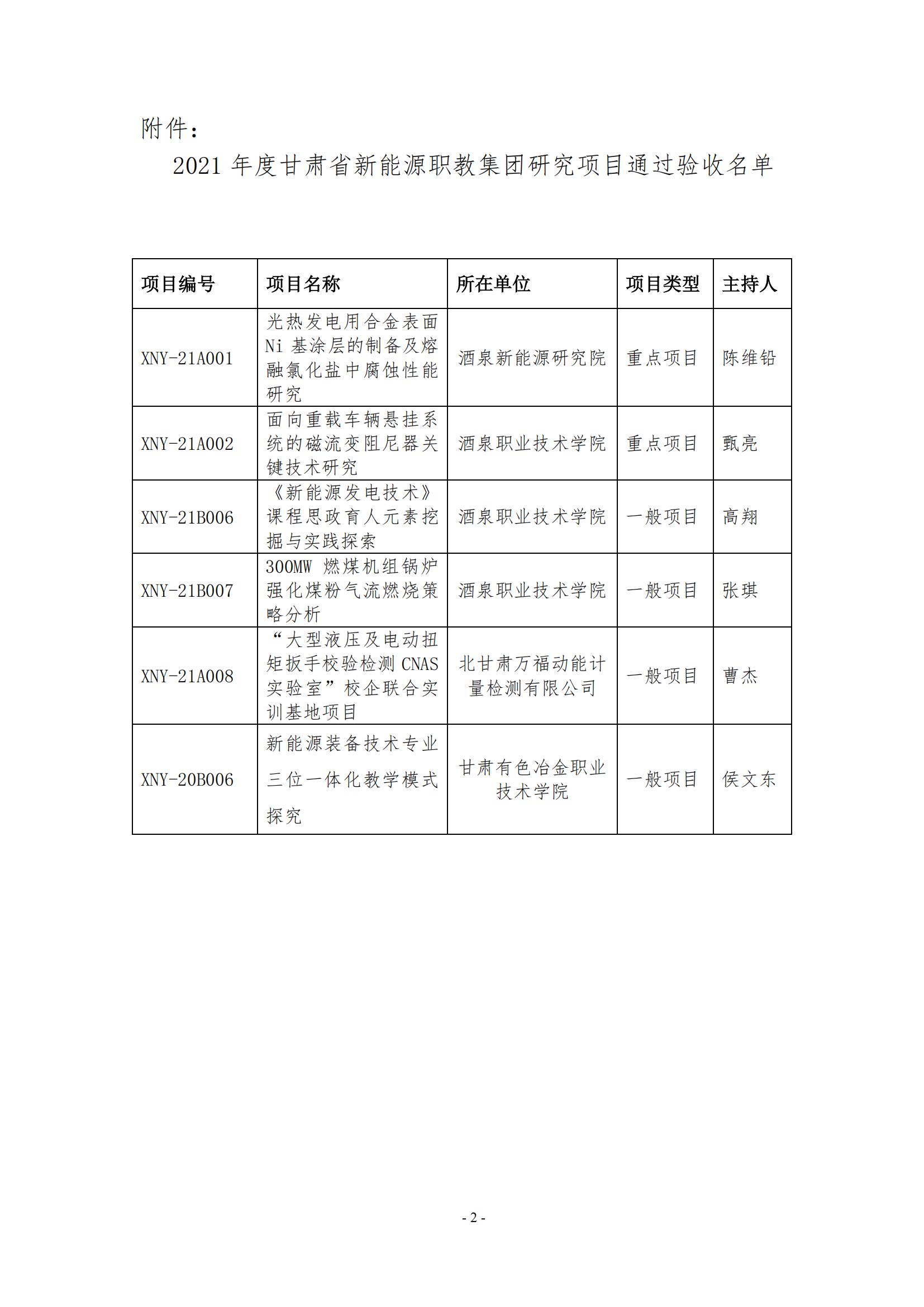 关于2021年度甘肃省新能源职教集团研究项目结项的通知