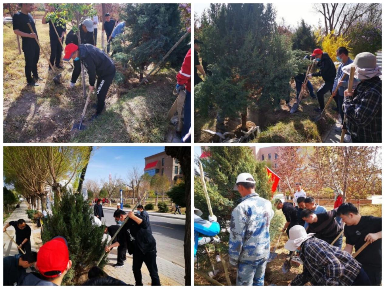 党支部副书记李亮向参与植树活动的教师简要介绍了本次植树活动的任务安排和种植要领后,在党支部书记、院长冯黎成同志的带领下,教职工踊跃投身到绿化校园的活动中。大家分工明确,或挥锹挖坑填土,或俯身扶正树苗,干劲十足,配合默契,用自己的劳动为校园增添一抹新绿。