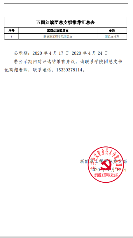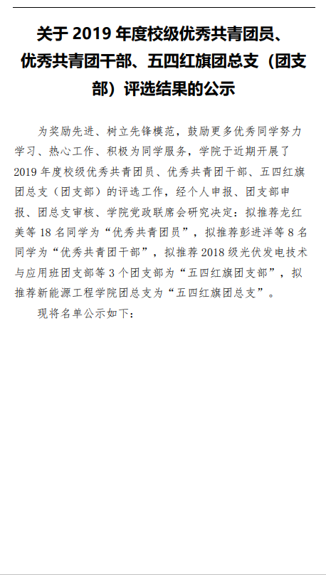 新能源工程学院2019年度优秀团干、优秀团员、五四红旗团支部公示